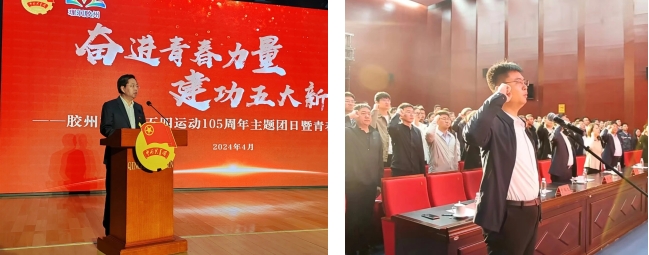 2024年是紀(jì)念五四運(yùn)動(dòng)105周年,也是新中國(guó)成立75周年。為傳承和弘揚(yáng)“五四”精神,全面展現(xiàn)上合新區(qū)青年奮發(fā)進(jìn)取的精神風(fēng)貌,膠州團(tuán)市委在膠州市市民文化中心二樓舉行“奮進(jìn)青春力量,建功五大新城”膠州市紀(jì)念五四運(yùn)動(dòng)105周年主題團(tuán)日暨青春故事宣講會(huì)活動(dòng),膠州市委副書(shū)記劉濤出席并發(fā)表致辭,團(tuán)市委書(shū)記孫傳奇帶領(lǐng)全體團(tuán)員、團(tuán)干部重溫入團(tuán)誓詞,會(huì)上對(duì)全市“五四典型”進(jìn)行通報(bào)表?yè)P(yáng)。中啟膠建集團(tuán)有限公司青島分公司團(tuán)支部榮獲2023年度“膠州市五四紅旗團(tuán)支部”稱(chēng)號(hào),中啟膠建集團(tuán)膠州分公司團(tuán)員青年職工王銘濤榮獲“青島市優(yōu)秀共青團(tuán)員”稱(chēng)號(hào),中啟控股集團(tuán)股份有限公司團(tuán)委書(shū)記袁曉文榮獲“膠州市優(yōu)秀共青團(tuán)干部”稱(chēng)號(hào)。