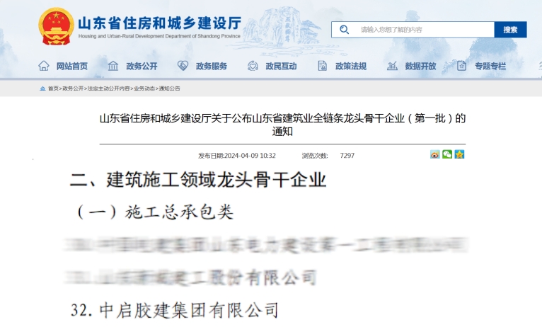 4月9日,山東省住房和城鄉(xiāng)建設(shè)廳公布了山東省建筑業(yè)全鏈條龍頭骨干企業(yè)(第一批)名單,我公司在施工總承包和外出施工兩類建筑施工領(lǐng)域均榮獲“山東省建筑業(yè)全鏈條龍頭骨干企業(yè)”稱號(hào)。